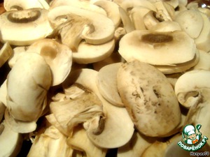 Грибы вымыть, высушить, нарезать тонкими пластинками.