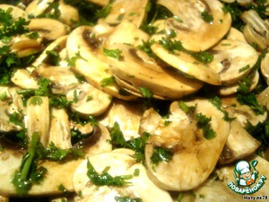 Выложить к грибам, хорошо перемешать, и настаивать еще 15 минут.