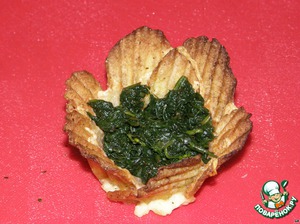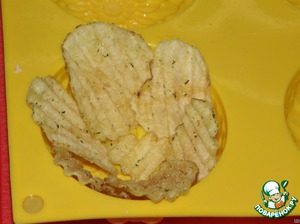 Чипсы выкладываем по форме в виде цветка. В качестве донышка тоже используем чипсину.