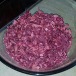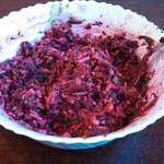 Свеклу помыть, обсушить, завернуть в фольгу и запечь в духовке при температуре 180-200 гр., примерно 1 час (если протыкается свекла вилкой или зубочисткой - значит, готово). Можно, конечно, и отварить, но запеченная вкуснее.