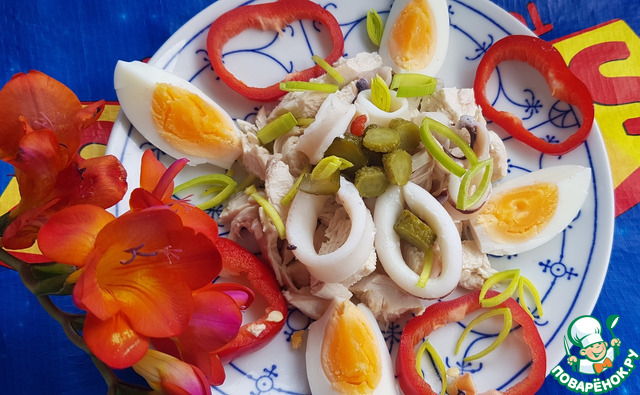 Ингредиенты для «Салат из кальмаров с курицей»: