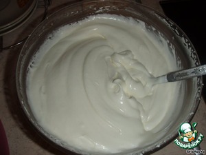 Для крема взбиваем сливки с сахаром и ванилькой и добавляем сметану, перемешиваем. -