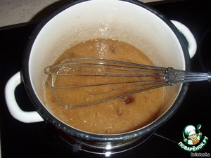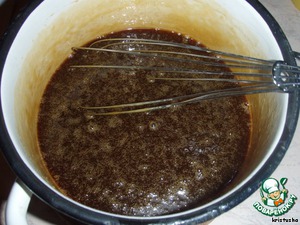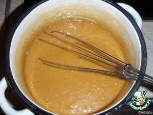всыпать соду и активно мешать, лучше венчиком, на большом огне. Масса сильно вспенится и побелеет. Держать ещё 1-2 минуты, быстро перемешивая, пока не будут проскальзывать рыжие полоски со дна. Снять с огня, мешать ещё минут 5, т.к. масса будет потихоньку темнеть до цвета конфет «Коровка». Такой аромат стоял, когда тесто готовила... Аромат карамели.