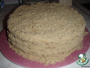 Бока тоже обмазать. Обрезки измельчить и посыпать торт.
