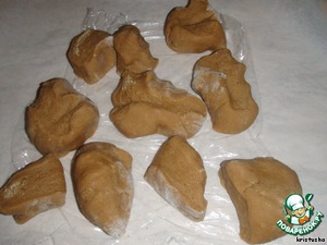Подпылить мукой стол, разделить тесто на 10 частей. -