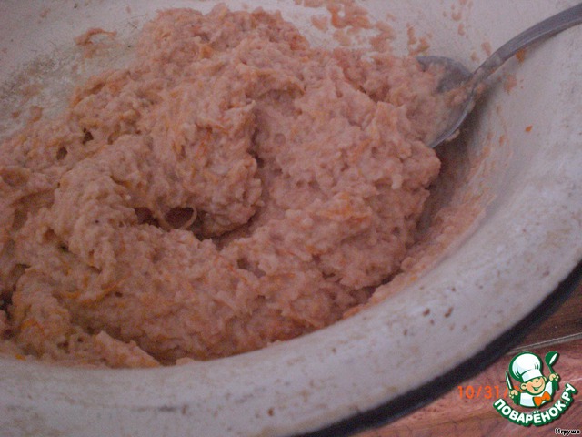Добавляем измельченную тыкву, яблоко и замешиваем тесто. -