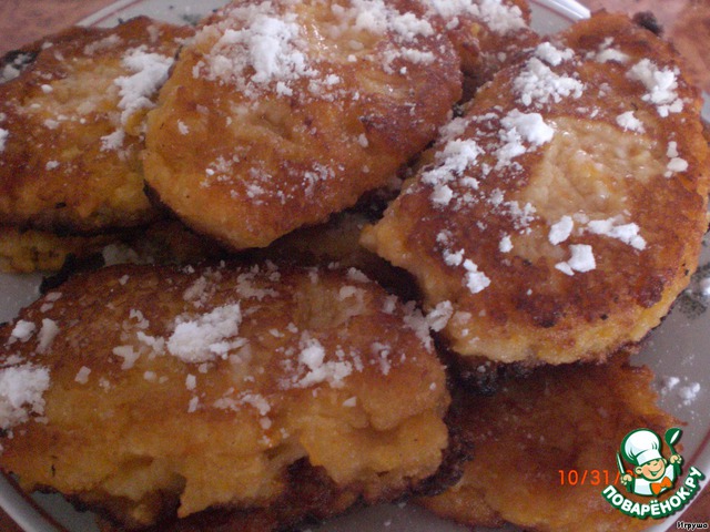 В сковородке разогреваем масло, выкладываем ложкой оладьи и жарим с обеих сторон до румяной корочки.