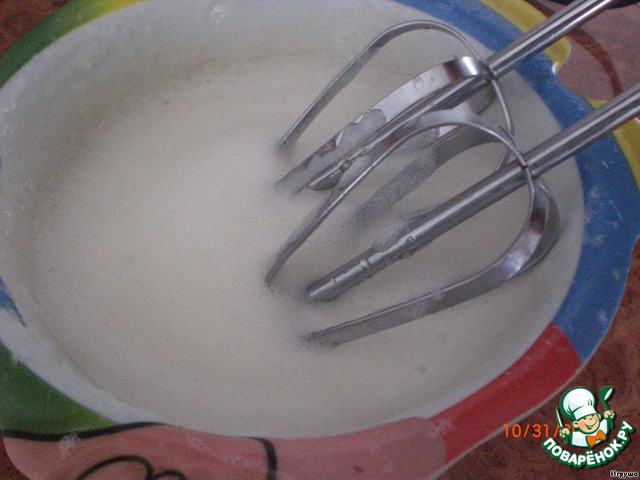 Миксером или венчиком взбиваем белок. Аккуратно добавляем в тесто.