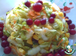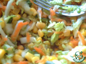 Мелко шинкуем капусту. Солим и мнем. Трем на терке морковь и огурец, режем мелко перец и петрушку. Добавляем кукурузу. Заправляем маслом и украшаем! ПРИЯТНОГО АППЕТИТА!!!
