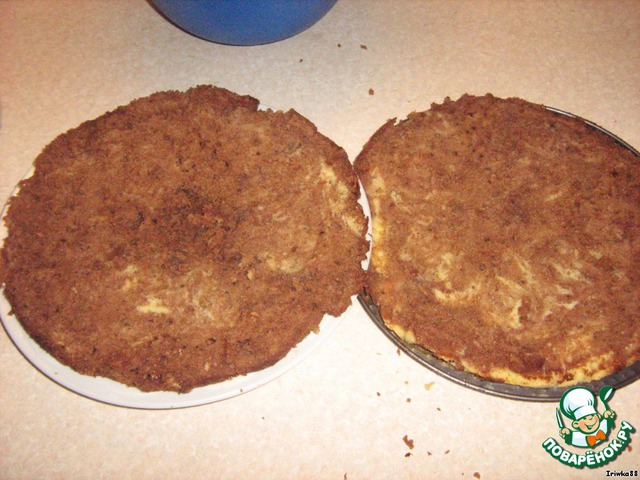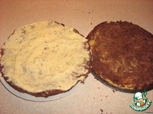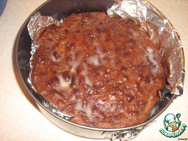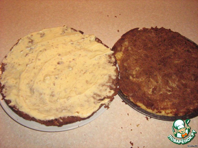 Нагреть оставшийся мед с оставшимся молоком и залить смесью торт, проткнув несколько раз палочкой. Оставить на 5 минут, затем перевернуть и дать остыть.
