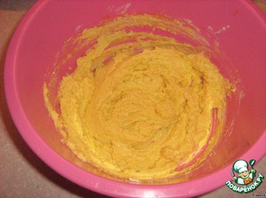 Взбить размягченный маргарин и сахар с 60 мл (3 ст. л.) меда.