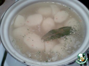 Сварить очищенный картофель в подсоленной воде, с лавровым листом и 1ч.л. куриного бульона "Ролтон" (по желанию).