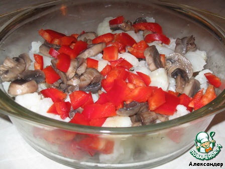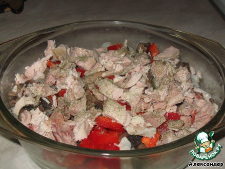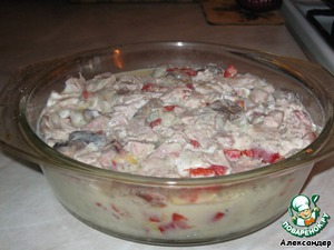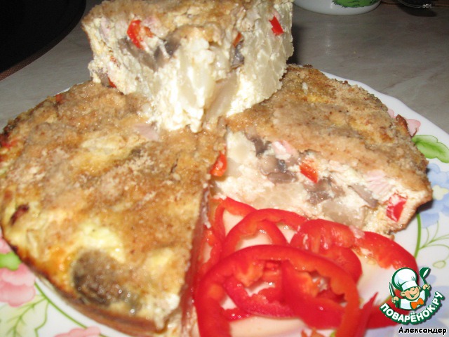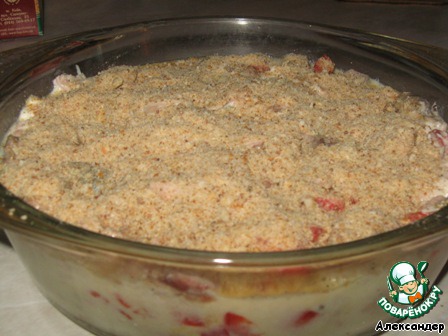 Сверху посыпать панировочными сухарями и поставить в духовку минут на 30.