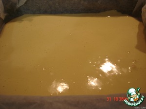 Выложить тесто на застеленный протвень,выпекать при200 гр-8 мин