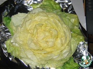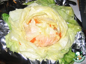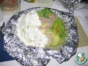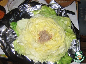 Когда начинка разложена, заверните капусту в фольгу, руками формируя "кочан".