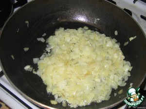 Лук слегка обжариваем на растительном масле. Часть обжаренного лука (примерно 1/3) перекладываем в кастрюльку или сотейник.
