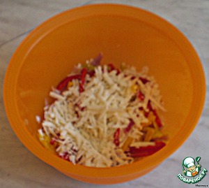 Добавить 3 сладких перца разных цветов, порезанных соломкой.