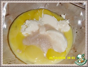 Миксером перемешать желтки со сметаной и погашенной содой до однородной консистенции.