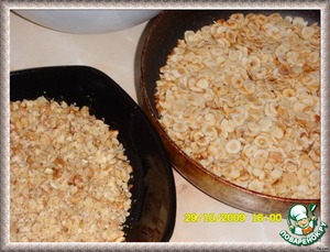 Орехи грецкие обжарить, порубить на мелкие кусочки.