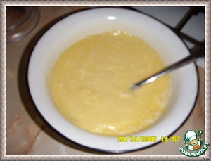 [b]Тесто[/b]. Поставить маргарин в микроволновку, пока не будет жидкий/мягкий (но не горячий).