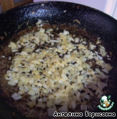 5. Готовим соус. На сливочном масле обжарить лук, нарезанный кубиками.