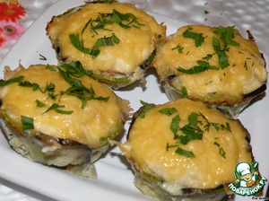 • Наполняем получившейся смесью и отправляем в духовку минут на 20, после посыпаем тертым сыром и обратно в духовку на 10 минуток (180гр)
