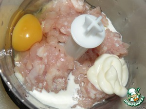 • Взбить фарш, яйцо, майонез, сливки и добавить специи