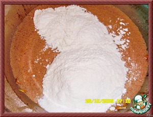 Аккуратно вмешать муку, смешанную с разрыхлителем и солью.