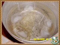 В микроволновке довести до кипения, поделить на 2 части. Я после замачивания в ледяной воде, отдельно в чашке, залила кипятком 4 ст. л. |