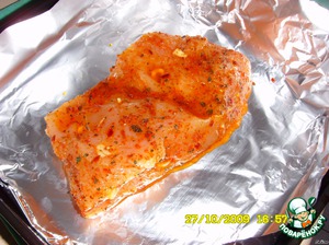Кладем на фольгу (потом удобно будет не мыть противень и завернуть после выпечки).