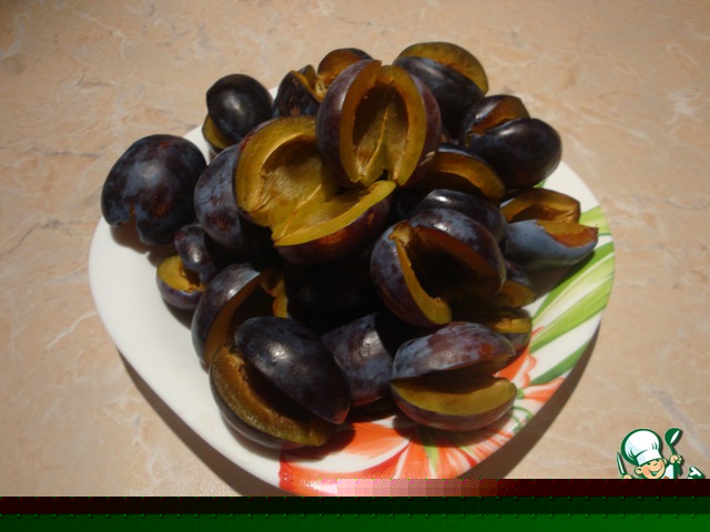 • Нарезаем сливы на половинки (если большие - на четвертинки), вынимаем косточки.