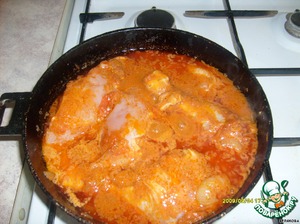 Положить куски курицы....потушить немного....