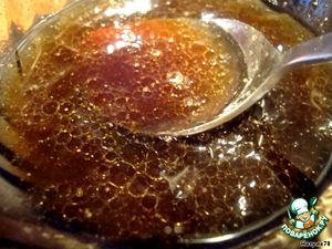 Мед подогреть, чтобы стал теплым, добавить к нему соевый соус, пару чайных ложек лимонного сока, оливковое масло и перец - 1/4 ч.л. Хорошо перемешать.