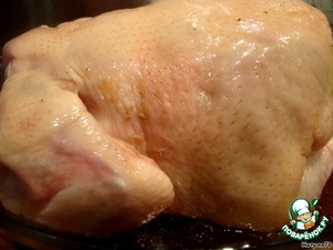 Смазываем курочку маринадом. Оставляем на пол-часа мариноваться.