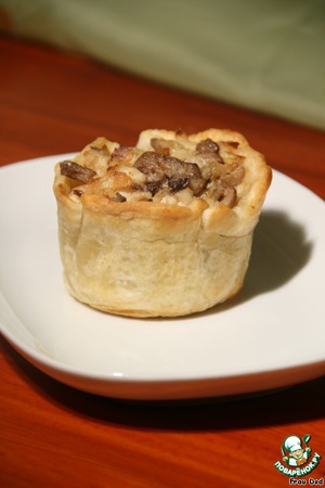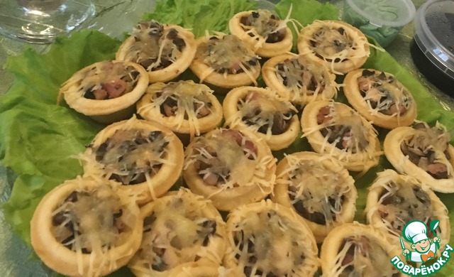 Не победы для, а участия ради - выставляю на конкурс "Королева фуршета" любимое блюдо своего мужа. Изначально рецептом со мной поделилась кулинар Галина А., выложив его на другом сайте, однако там предлагалось жюльен помещать в булочки. Я же немного модифицировала, сделав основу для тарталеток из слоеного теста. Угощайтесь. Муж обожает это блюдо и готов скушать целый противень, хотя много он у меня не ест.