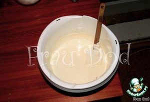взбиваем в блендере яйца с сахаром и ванилином, добавляем просеянную муку, крахмал и разрыхлитель. Все перемешиваем до небольшого загустения. -