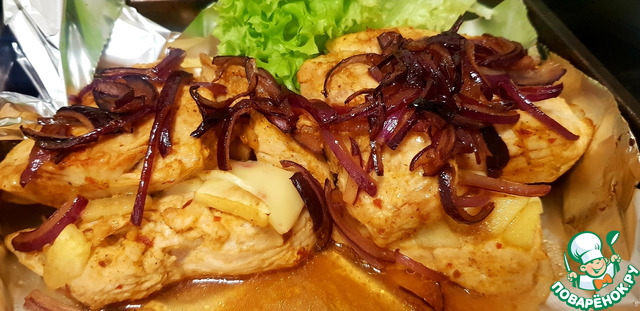 Рецепт «Куриные грудки с яблоками и сыром»: