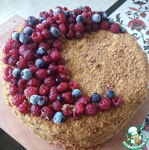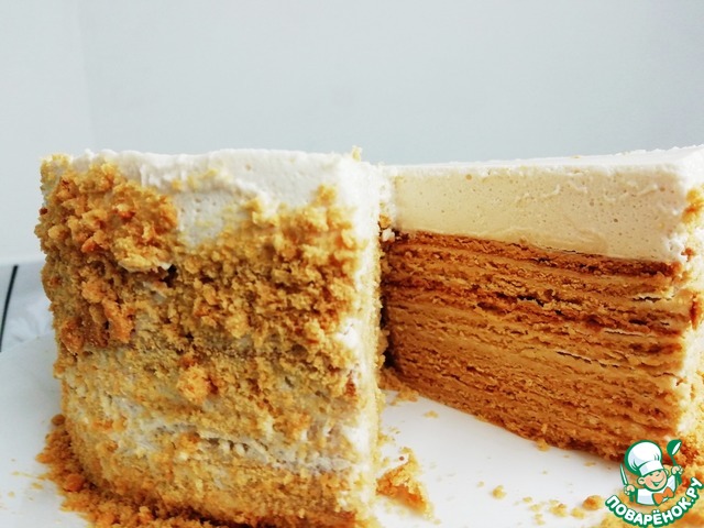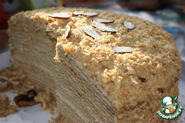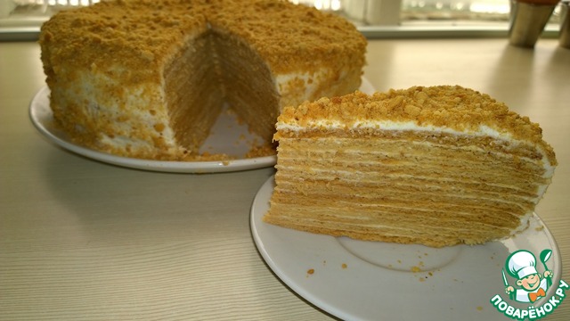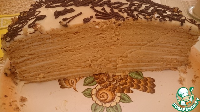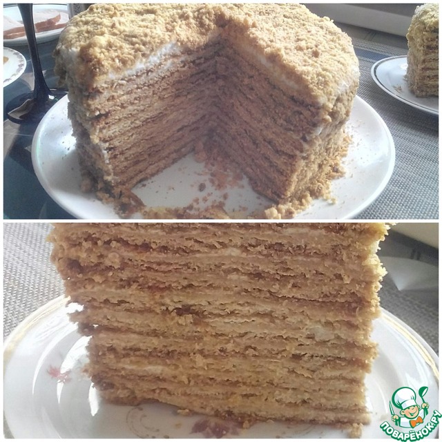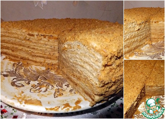 нежнейшие медовые коржи, тающие от пламя ваших губ, с незабываемым нежным кремом. Я конечно же , легких путей не ищу, решила добавить свою отсебятину. (да опять же простит меня автор