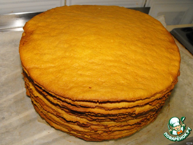 готовила пол порции, получилось 15 коржей по 20см. в диаметре. Торт получился высокий!!! совет девочкам, кто говорил, что намучился с раскаткой коржей. -(опять же, да простит меня автор