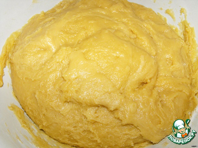 Постепенно добавить муку, мешая руками или лопаточкой, до густого теста.