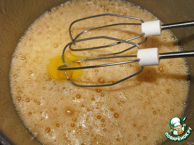 Добавить яйца, по одному, хорошо взбивая, сахар и хорошо перемешать.
