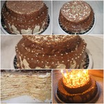 [+5]Приготовила дочечке на её первый солидный юбилей, всем очень-очень понравился. Я решила впервые сделать торт двухъярусным, что произвело должное впечатление на гостей. У меня получилось 11 больших и 9 маленьких коржей. Всем рекомендую! Большое спасибо за рецепт!