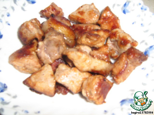 Я дополнительно немного протушила мясо после обжарки, т. к. в оригинальном рецепте приготовление мяса на этом практически заканчивалось.
