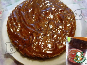 выкладываю корж на блюдо, смазываю слоем персикового повидла