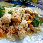 Это очень вкусный салат, очень люблю сочетание фруктов с куриным мясом.