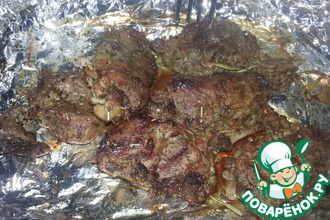 - Следующим этапом подливаем понемногу вино и доводим ребрышки до готовности (уже без крышки). Периодически ребрышки переворачиваем.