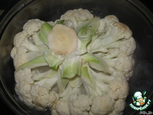 Цветную капусту отвариваем в кипящей, подсоленной и немного подслащенной воде, почти до полной готовности. Точнее даже до готовности, но так, чтобы капустка не разварилась.