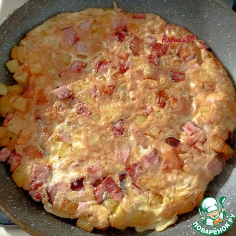 Это, как мне кажется, самая популярная испанская закуска. Оригинальный рецепт ее не содержит кабачок, только картошку, лук и яйца. А вообше, они омлет делают из всего, что есть под рукой (так что, добавив кабачок, я омлетик не испортила:)), и обязательно обжаривают с двух сторон. Это простое, сытное, недорогое блюдо, я думаю, многим придется по душе.