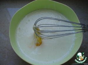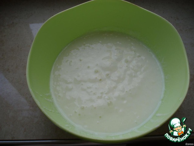 • В кефир добавить соду (не гашеную, она погасится от "кефирной" кислоты), яйца, ванилин, соль и перемешать.