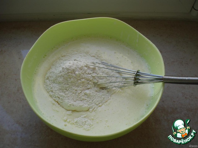 • Добавить муку и хорошо перемешать.